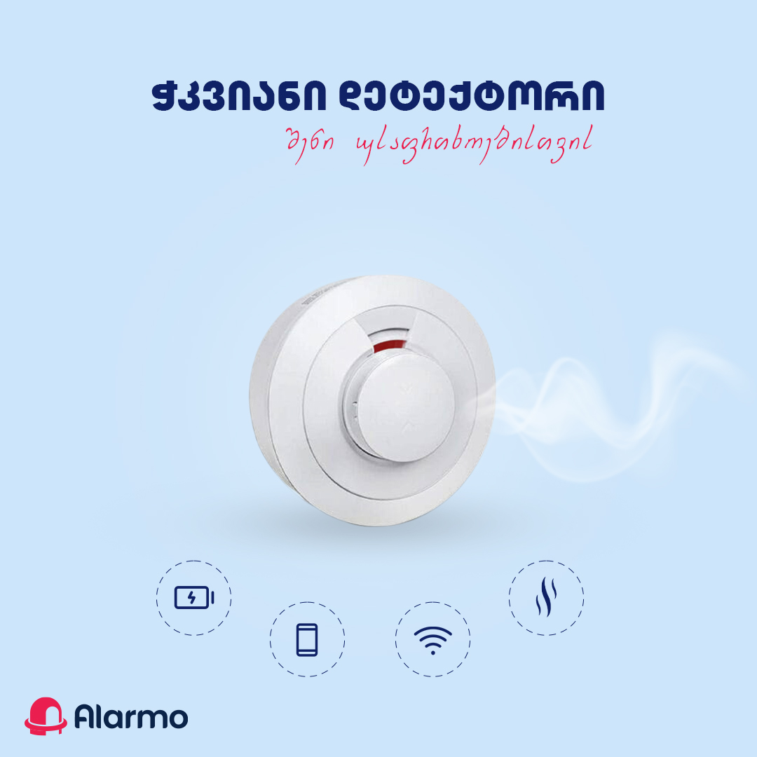 კვამლის ჭკვიანი დეტექტორი, რომელიც უკავშირდება მობილურ ტელეფონს და ნებისმიერი განგაში ტელეფონზე გამოჩნდება.